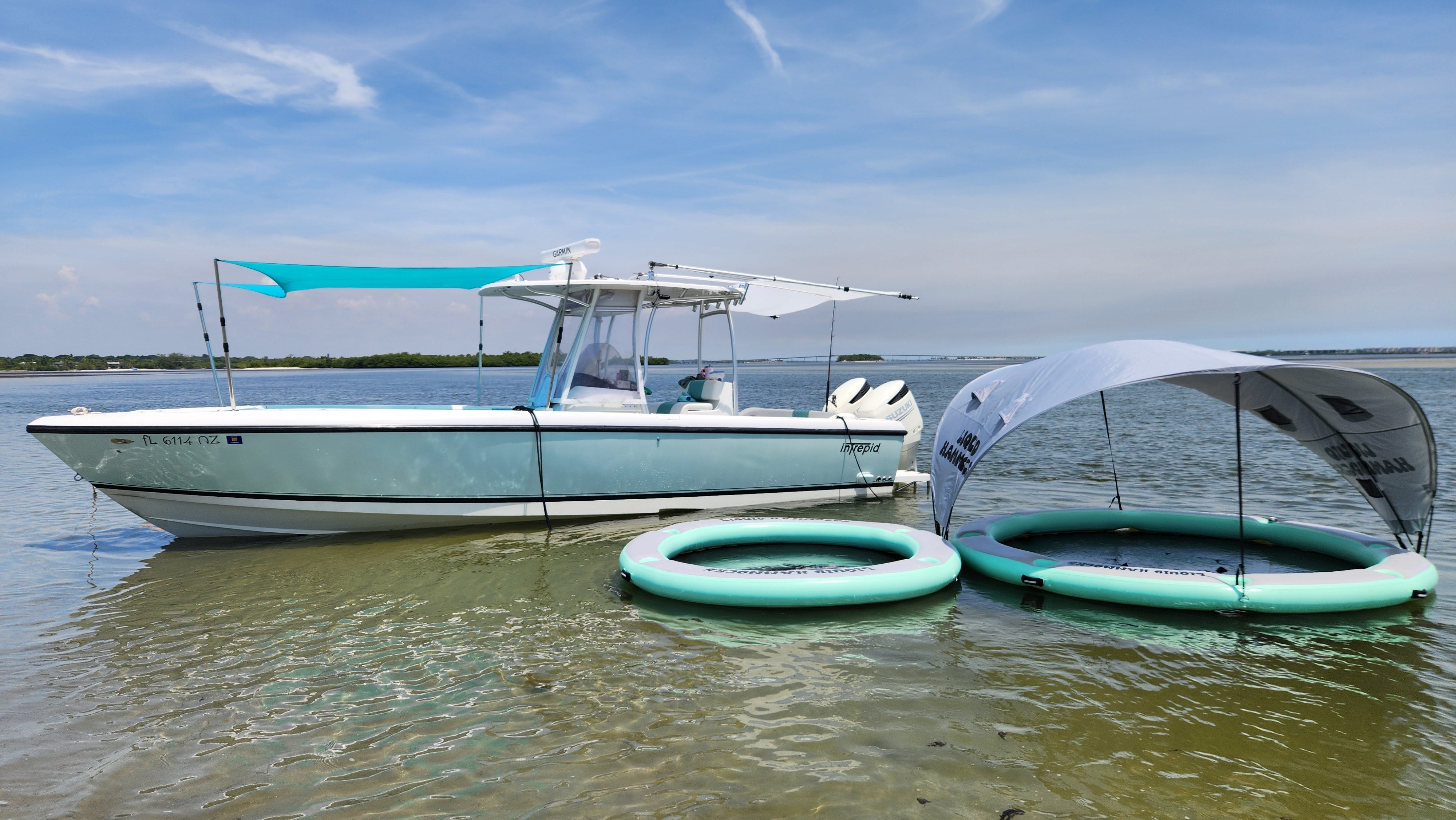 So pack your drinks, Liquid Hammock, and enjoy a great day on the water regardless of boat, car, or jet ski size. See size comparisons here- How Big?